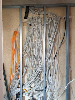 Von hinten sieht man alle Kabel. Diese Wand wird noch verkleidet.